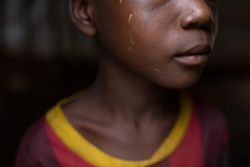 | 武装グループのアンチ・バラカから解放された子どもたちを支援するユニセフの施設に身を置く男の子。 |