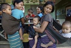 | 保健センターで診察の順番を待つ親子たち。(ラオス) |