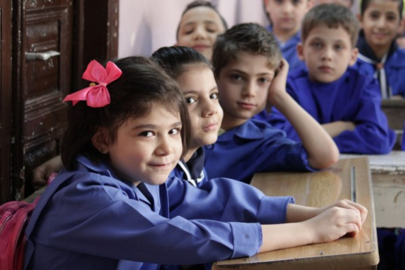 ダマスカスの学校が再開され、登校した4年生の児童たち。 |