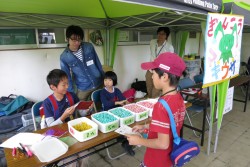 準備会合で出たこんな会話から、店長さんへの給与の支払の徹底も図られました。事前の子ども会議や準備作業への参加に対する報酬を10マキー、店長としての勤務中の給与を時給10マキーで計算。1日の売り上げの5%をボーナスとして支給する仕組みが作られたことで、1日目の終わりに売り上げを比較して一喜一憂しながら、売り上げの悪い店はなぜ売り上げが上がらないのか話し合い、翌日に改善を図る子どもたちの姿も見られました。また、食品を扱うお店では、今年、リユース食器を導入。ゴミの量を昨年の3分の1に削減するだけでなく、ゴミの分別やリユース食器の汚れのふき取り作業など、新たな「お仕事」も生み出しました。