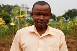コミュニティ保健スタッフのシルベストル・バンバシさん。各家庭を訪問し、子どもたちの栄養状態をチェック。栄養や健康、衛生習慣に関するアドバイスも行う。 |