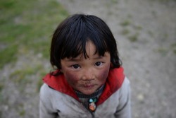 被災したソルクンブ郡で暮らす5歳の子ども。 |