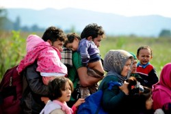 ギリシャとの国境を越え、移動を続ける子どもたちや親たち。(マケドニア) |