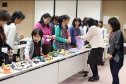 被災地支援でも行われた「遊び」を通じたケア=「プレイセラピー」で実際に使われるおもちゃを手に取り、「遊び」をイメージする参加者。 |