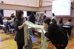 研修会を主催した宮古児童相談所の担当者は、震災から3年8か月が過ぎ、被災地で活動する支援者(専門家)のニーズも「被災児童に対する特別な支援」から「日常生活を通した被災児童に対する支援」に変化していると語ります。2014年11月の研修には、東京セラプレイ・センターの高井美和先生が講師として招かれましたが、研修の中で紹介された親子の愛着関係から子どもの状態を理解する視点や、子どものグループに向けて実施するセラプレイ遊びの実践演習は、日常的に子どもと関わる研修会の参加者が“今”必要としていることに応えるものだったようです。「私たちは、他の専門職や支援機関に較べてあまり研修機会がありません。学童には、被災時小学校1年生で、今も落ち着きのない行動を繰り返している子がいたりします。今回の研修で、普段やっている「遊び」の意味を捉え直すことができましたし、「遊び」を通して子どもの安心感・安全感を高める方法も学べました」といった感想を寄せてくださった学童指導員の方もいらっしゃいました。