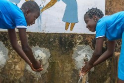 学校のトイレの外で手を洗う生徒たち。(ナイジェリア) |