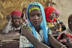 ニジェールの難民キャンプ内のユニセフが支援する教室で、授業に参加するナイジェリアから避難してきた少女。 |