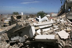 武装グループに使用されていた学校。爆撃され、現在は校舎や校庭が瓦礫と化している。(タイズ) |