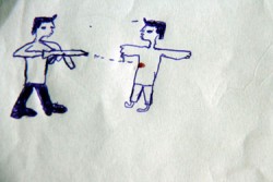 ブジュンブラで暴力を目撃した子どもが描いた絵。 |