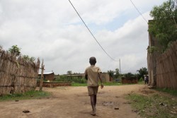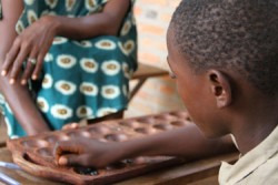 ブジュンブラの「子どもにやさしい空間」で伝統的なゲームをして遊ぶ少年。 |