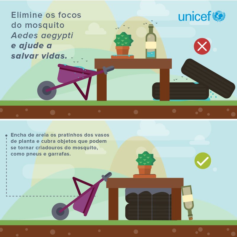 ユニセフは、ジカウイルスやその他の病気を媒介するネッタイシマカの根絶を目指して、保健省と協力して国民に働きかけを行っています。これにより、蚊の駆除や予防に関連した情報を、ブラジル全地域により速く伝達することが可能です。