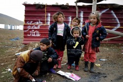 シンジャル山に設置されたテントの近くで出会った、暴力から逃れてきたヤズディの子どもたち。 |