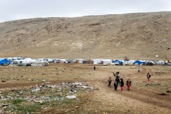 シンジャルの山に入ると、気温が下がっていくのが分かりました。そして、不毛な大地に建てられた1,700世帯の避難民たちの仮設テントを襲う、荒々しい突風が私たちを出迎えました。