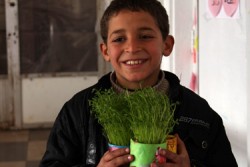多くの課題が依然として残るなか、毎朝子どもたちは自分たちが育てる植物に向き合い、大切に育てています。「いつか朝起きたら、この小さな豆が大きな木になっていると思うよ!僕の平和への希望のように、大きくね」と、アハメドくんが話します。