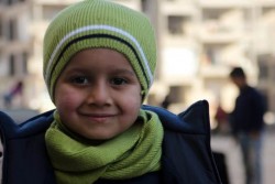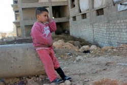 寒さが厳しいアレッポの町で、4歳のエスラくんと3歳の弟ワリードくんは室内の寒さを避けようと、避難所の外にわずかにある日当たりのよい場所を探しています。厳しい冬が再びシリアを襲っています。推定280万人の子どもたちが紛争を逃れ、シリア国内で避難民となっています。その多くは差し迫った状況で生活しています。