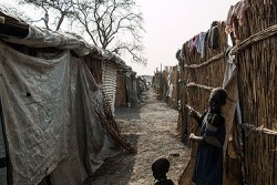 ベンティウの文民保護地区に身を寄せる子どもたち。約12万人がこの施設に身を寄せている。 |