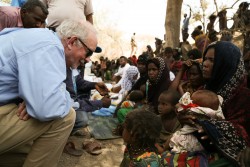 移動保健栄養チームの元に医療ケアを受けにきた家族と話す、ユニセフ事務局長のアンソニー・レーク。 |