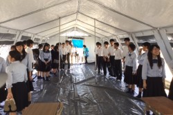 地震の影響で体育館や渡り廊下も使えなくなった熊本第二高校では、30ある教室のうち現在使用できるのは20教室のみ。このため、今回到着したテント10張のうち5張が同校で使用され、残り5張のテントも、同じような状況に置かれている熊本県内の学校に順次提供される予定です。