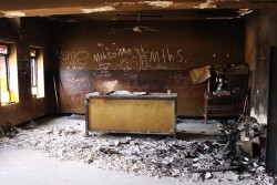 破壊された学校の教室(イラク)。 |