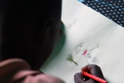 ボコ・ハラムに村が襲われたときのことを絵に描く男の子。(ニジェール) |