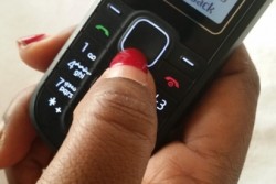 携帯電話のSMSで送られてきたU-Reportの質問に答える若者。 |