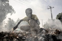 仕事をしているため学校に通うことができない国内避難民の男の子。(ナイジェリア) |