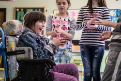 小学校に通う、障がいのある3年生の女の子(セルビア)。 |