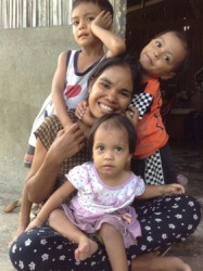 マタホイ村で暮らすオリンピア・カルバリョさんと3人の子どもたち。2人の子どもが代替的な就学前教育プログラムに参加するようになってから、カルバリョさんも保護者教育プログラムに参加している。 |