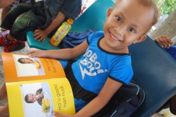 鐘の音は、カルバリョさんにとっては保護者教育セッションの始まり、カルバリョさんの子どもたちにとっては、新たな1日の始まりを告げる音です。カルバリョさんが保護者教育セッションに参加している間、5歳のアタナジオくんと3歳のイザイアスくんは代替的就学前教育に参加するのです。