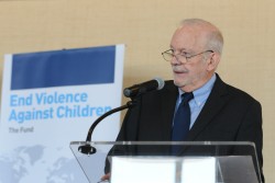 子どもへの暴力撤廃のためのグローバル・パートナーシップの立ち上げにあたり、ユニセフ事務局長アンソニー・レークは暴力根絶に向けたメッセージを訴えた。 (ニューヨーク) |