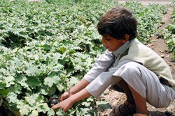 サヌア市北部のバニ・アル・ハレス地域で汚水が氾濫した農地で栽培された野菜を手にする男の子。 |