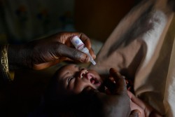 ナイジェリア北部でポリオワクチンを接種する乳児(ナイジェリア・カノ州、2016年3月撮影)※本文との直接の関係はありません。 |