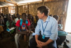 南スーダンのベンティウの小学校を訪問するユニセフ事務局次長ジャスティン・フォーサイス(2016年8月撮影) |
