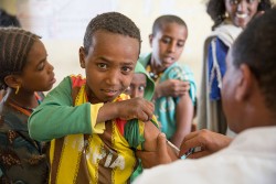 ティグレ州の保健センターではしかの予防接種を受ける少年。 |