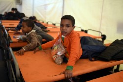 イドメニの難民・移民のための一時受け入れセンターで休息をとる子どもたち。(2016年2月撮影) |