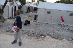 ギリシャのレスボス島の一時受け入れセンターで遊ぶ、難民・移民の子どもたち(2016年5月撮影) |
