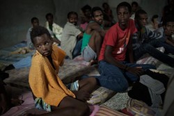 トリポリの拘留施設で休むエリトリア出身の子ども。(2015年5月撮影) |
