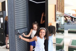 “タイムマシーン”は、参加者に子ども時代に関する質問をして、その答えをもとにオリジナルの歌を作曲し提供する。 |