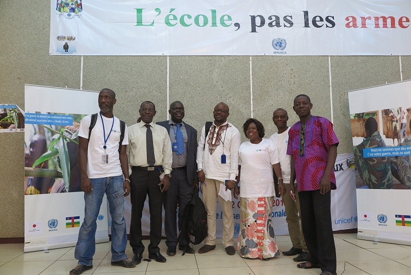 このワークショップでは、隣国コンゴ民主共和国の子どもの兵士解放のプロジェクトに携わる政府職員、シエラレオネから来た専門家、大湖地域のプログラムに携わった専門家(ブルンジより)、ユニセフの子どもの兵士解放専門家(ニューヨーク本部より)、コートジボワールで武装解除に携わった現MINUSCA職員等が参加し、それぞれの経験を分かち合いました。