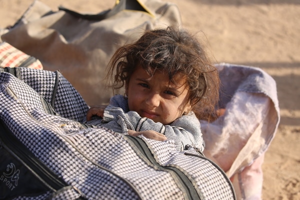 続くモスルの紛争から逃れてきた難民の女の子(2016年10月26日撮影) |