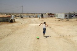 ザータリ難民キャンプで遊ぶ男の子。 |
