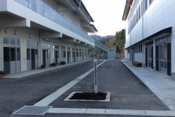 多くの方を収容する避難所となる体育館(写真右)の直ぐ隣には、家庭科室などが入る建物(写真左)を設置。震災発生直後、当時小学校3-4年生だった子どもたちから出された避難所として使いやすい学校のアイディアを元に考えられました。 |