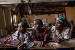 ボコ・ハラムに国内避難民施設に身を置く家族。 |
