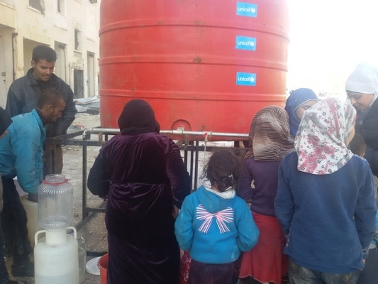 最近のアレッポからの避難民への支援のために、ユニセフの職員は昼夜問わず、子どもたちの生活が少しでもましになるように働いています。冬服が配布されつつあり、避難所やハナノのように帰還した人々が暮らす地域にトラックで飲料水を運んでいます。