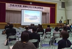 この冬一番の冷え込みとなった2016年11月26日午後、岩手県大船渡市の県立福祉の里センターで、「平成28年度 里親について学ぶ研修会」が開催されました。社会福祉法人大洋会と児童家庭支援センター大洋が主催し、日本ユニセフ協会と岩手県ユニセフ協会が開催に協力した研修会は、今回、気仙・両磐・胆江各地区里親会の合同研修会の一貫として位置づけられ、里親さんや民生児童委員、大洋学園を始めとする県内の児童養護施設や乳児院の職員、児童相談所職員、児童家庭支援センター大洋の職員など、総勢約40名が参加しました。