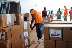 ポート・ロコの病院に到着した保健ケア物資。ここは、政府による保健イニシアティブが行われている国内1,200の施設のうちの一つ。 |
