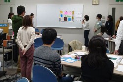 WHO(世界保健機構)とWar Trauma Foundation(戦争トラウマ財団)、World Vision International(ワールド・ビジョン・インターナショナル)は、2011年、『Psychological First Aid(心理的応急処置:WHO版PFA))のマニュアルを発表しました。さらに、本マニュアルを基に、子どもと養育者の部分を充実させ、子どもへの心理社会的ケアの手法として開発された「Psychological First Aid for Children(子どものためのPFA)」がセーブ・ザ・チルドレンより刊行されています。今回の研修会では、その締めくくりとして、「子どものためのPFA」の日本語版を制作されたセーブ・ザ・チルドレン・ジャパンの赤坂美幸さんと、日本プレイセラピー協会の本田涼子さんと湯野貴子さん(ともに日本ユニセフ協会東日本大震災心理社会的ケアアドバーザー)から、専門家でなくてもできる「心の応急手当」の具体例を紹介いただきました。