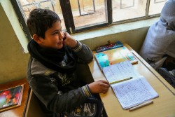 質素な再開ではありますが、子どもたちにとっては、何年もの間続いた紛争からようやく日常へと戻る一歩でもあります。そのうちの一人が、2015年8月に迫撃砲による攻撃で父親を亡くし、自身の片足も失ったハメッドくんです。美術の先生になることが願い、とハメッドくんが語ってくれた時、近くで爆発の音が鳴り響きました。今も、爆弾処理チームが、市内に残された爆弾を処理しているのです。
