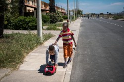 壊れた掃除機で遊ぶ難民の子どもたち(イタリア・シチリア) |