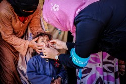 暴力が激化するイエメンで、ユニセフ(国連児童基金)とパートナー団体は、個別訪問による全国規模のポリオ予防接種キャンペーン第一期を終了し、500万人の5歳未満児にポリオの経口ワクチンとビタミンA錠剤を提供することができました。